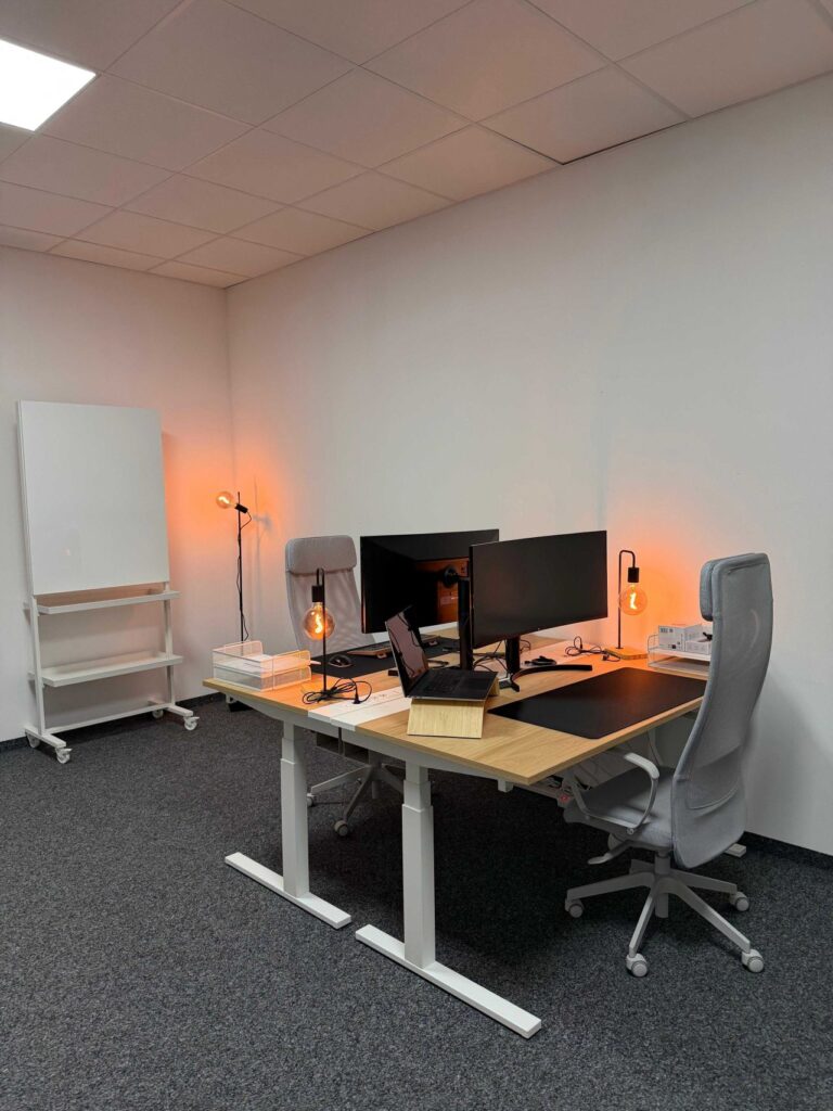 Neben modernen Arbeitsplätzen für unser Team haben wir bei „ideenhunger Karlsruhe“ als Herzstück einen Workshopraum geschaffen, der gleichzeitig auch als Seminarraum oder Raum zum Netzwerken gestaltet werden kann. Denn genau das wollen wir auch am neuen Standort fortsetzen: Mit Menschen und Unternehmen an kommunikativen Fragestellungen arbeiten und Kommunikationssysteme aufbauen. Wie immer mit strategischem Blick fürs große Ganze, gepaart mit Kreativität, Design & Technologie.